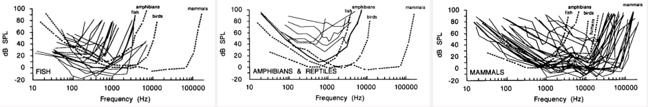 - Cada especie ha adaptado su sistema auditivo a su entorno.