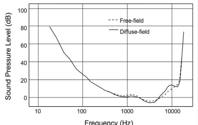 La imagen muestra cómo cambia la sensibilidad auditiva según la frecuencia: escuchamos mejor en la zona del habla (1–5 kHz) y peor en graves y agudos extremos.