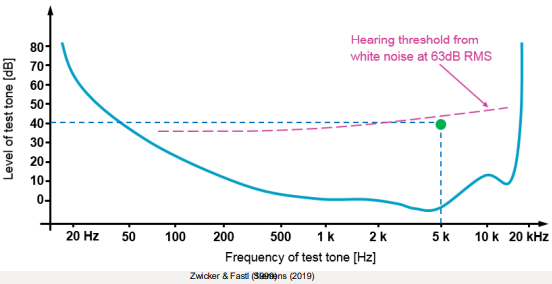 Esto se debe a que el ruido excita principalmente un único filtro auditivo dentro de la cóclea.