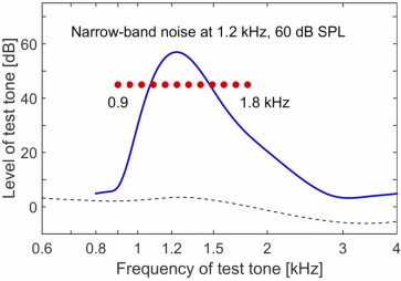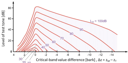 Las curvas de enmascaramiento muestran cómo cambia el umbral de audición alrededor de la frecuencia del enmascarador.