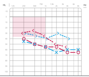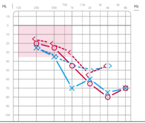 Es el caso ideal cuando el usuario mantiene bastante audición en graves (por debajo de 40 dB).