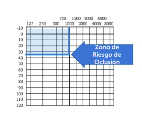 En audiología práctica hay algo que todos aprendemos a base de experiencia: no todas las pérdidas auditivas admiten el mismo tipo de acoplamiento. Por eso es útil mirar la gráfica que muchos profesionales llevan casi grabada en la cabeza: la zona de riesgo de oclusión.